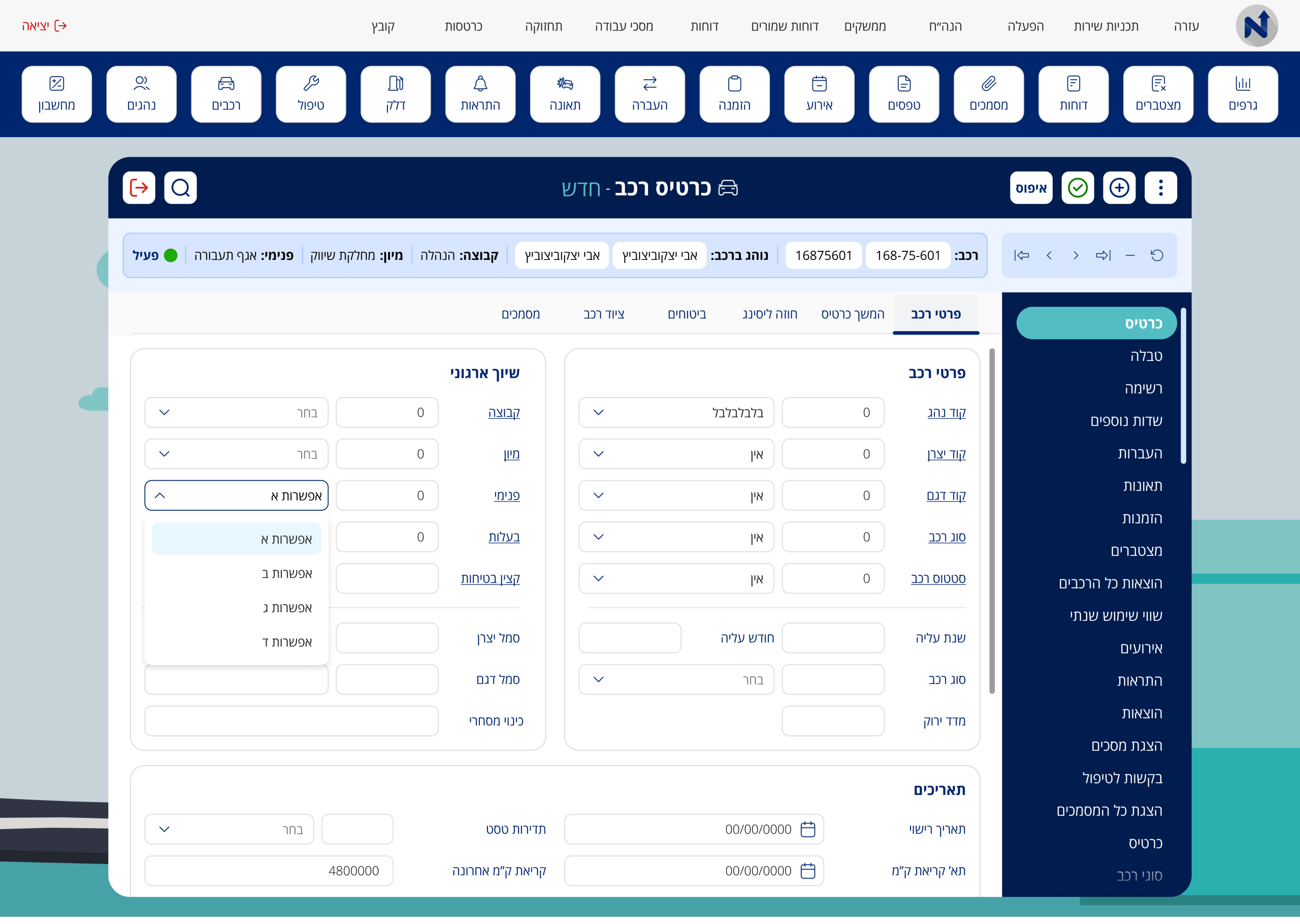 • עדכוני רכב והרשאות נהגים מנצר לספקים
